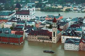 In 2013 central Europe was flooded after several days of heavy rain in early june. The historic centre of Passau, where the Danube, Inn and Ilz converge, was underwater on 1 June. In Passau the water levels reached 12.85 m (42.2 ft), overflowing the highest recorded historic flood level.