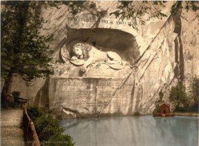Another historical monument is the Lion-memorial. It is a rock relief designed by Bertel Thorvaldsen. It commemorates the Swiss Guards who were massacred in 1792 during the French Revolution when revolutionaries stormed the Tuileries Palace in Paris.